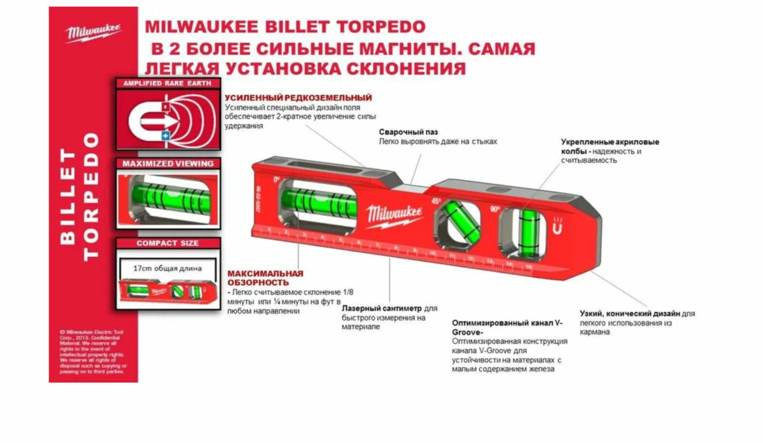 Магнитный уровень Billet Torpedo, Milwaukee 4932459097 интересное: