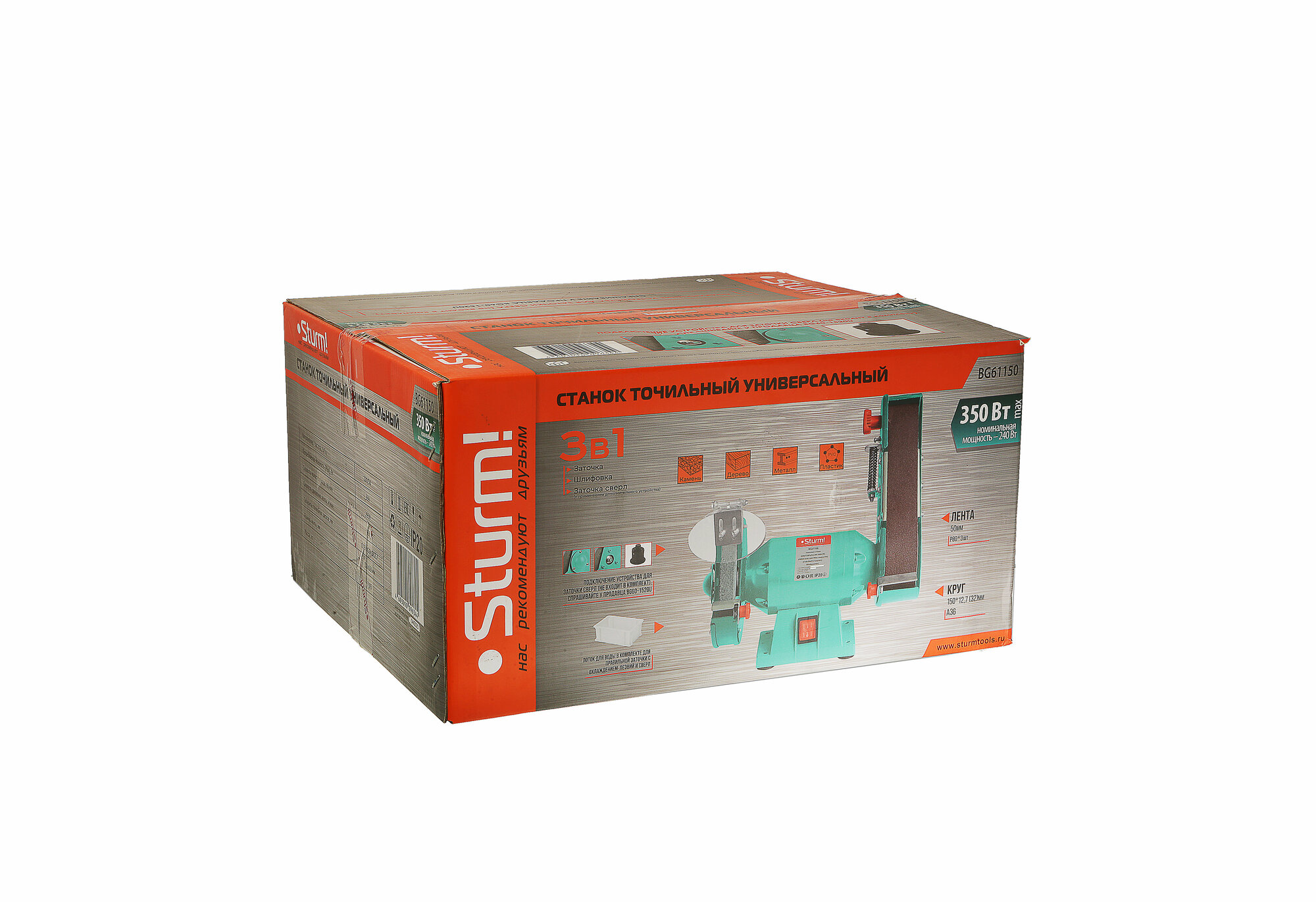Купить Точильный дисково-ленточный станок STURM! BG61150,150 мм, 50х686, 350 Вт, адапт.Д.заточки сверл