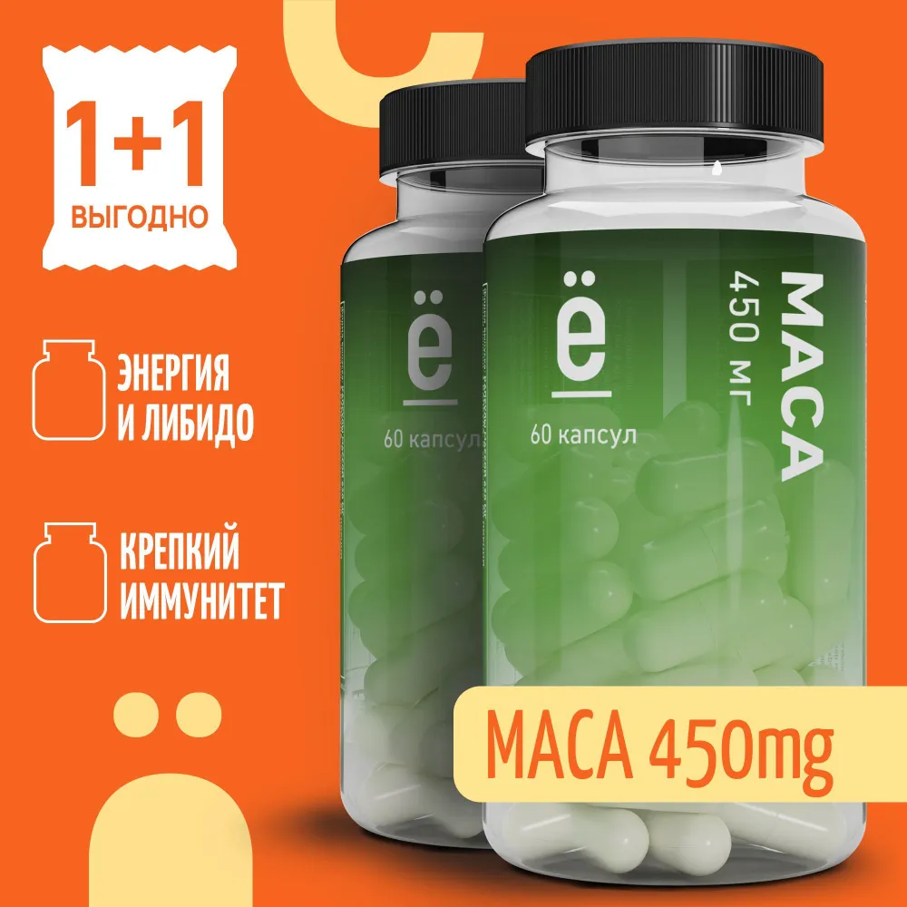 Мака перуанская Ё|батон тестостероновый бустер в капсулах, 2 упаковки 60 + 60 шт.