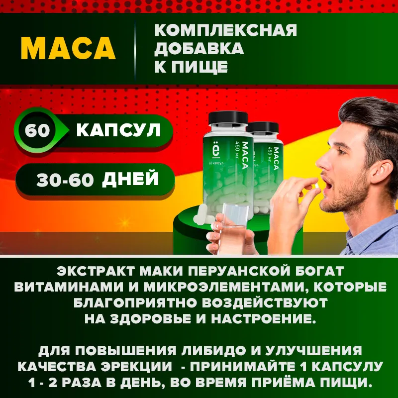 Мака перуанская Ё|батон в капсулах 60 + 60 шт. интересное: