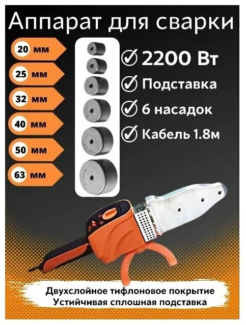 Аппарат для сварки полипропиленовых труб TIM WM-25 / 2200Вт. + насадки на паяльник для труб 6 -шт.