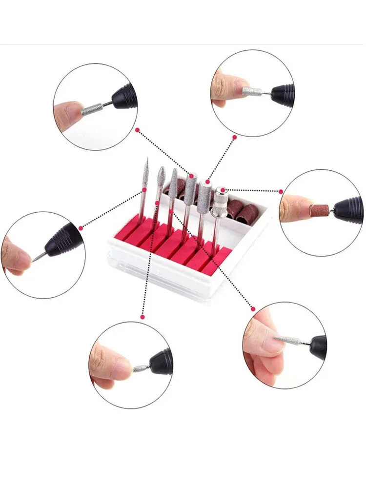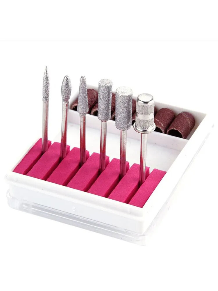 Купить Фрезы с алмазным напылением, с насадками для маникюра, в органайзере, 12 шт