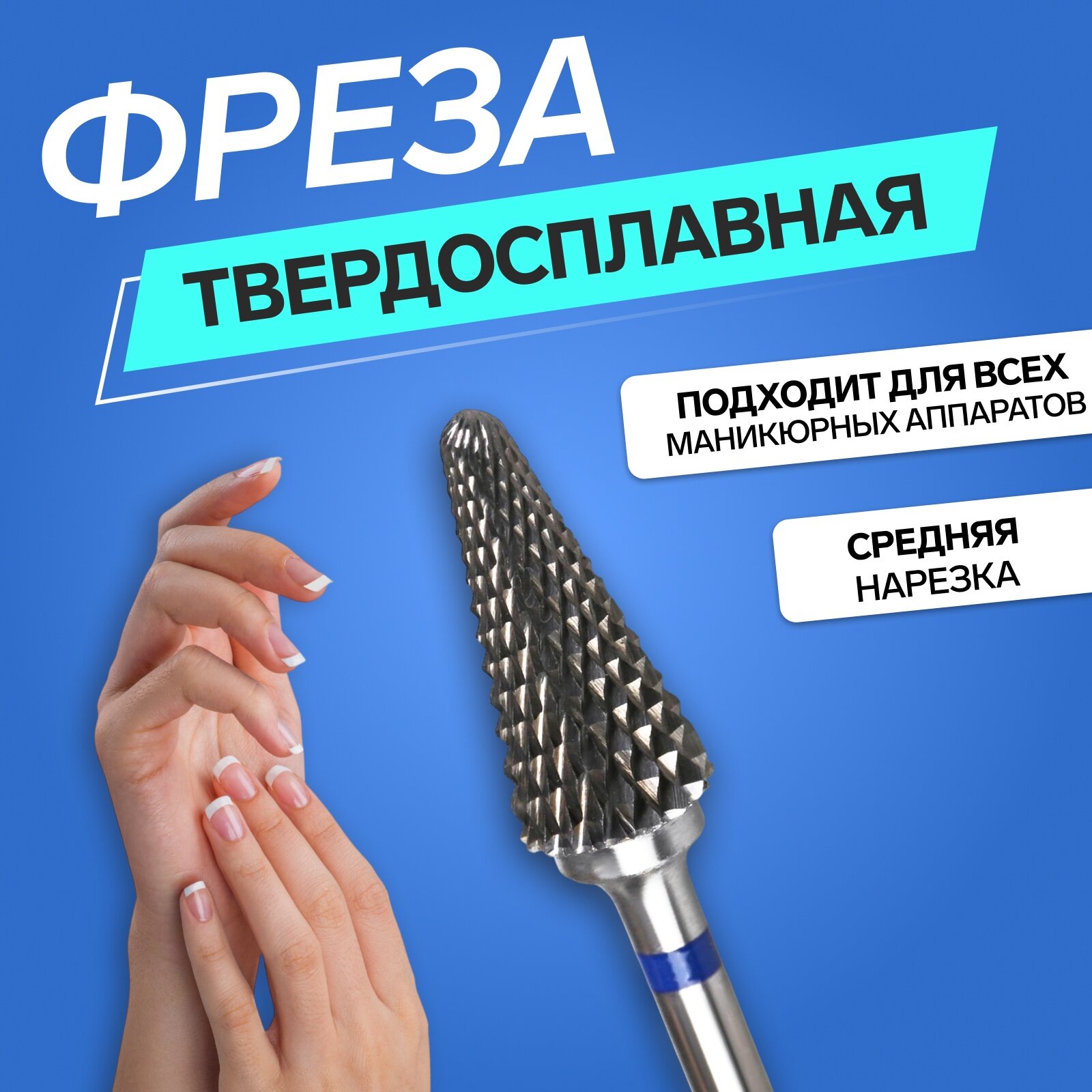 Фреза твердосплавная для маникюра Конус, средняя нарезка, 6 ? 15 мм Queen fair 4296229 .