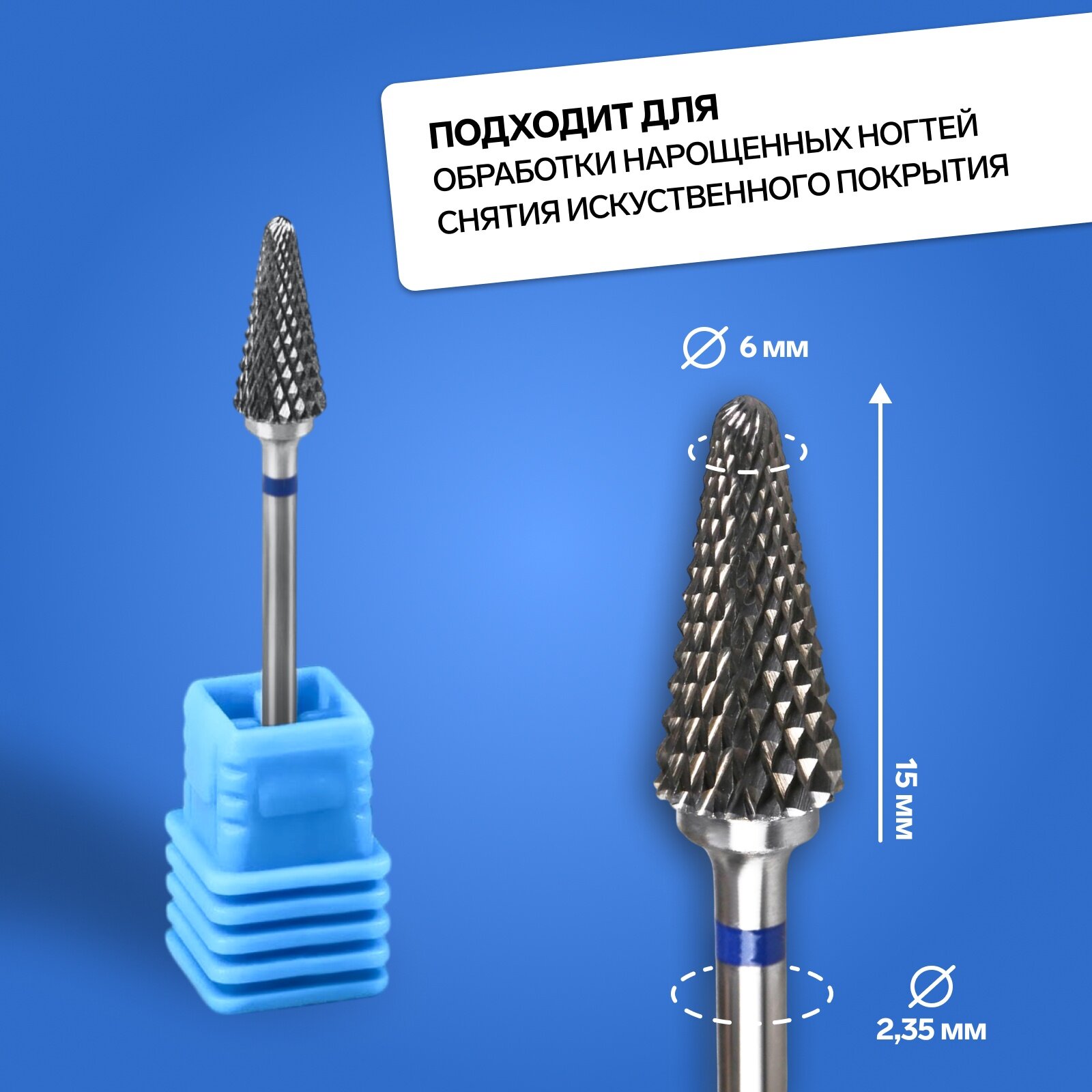 Queen fair Фреза твердосплавная для маникюра «Конус», средняя нарезка, 6 × 15 мм