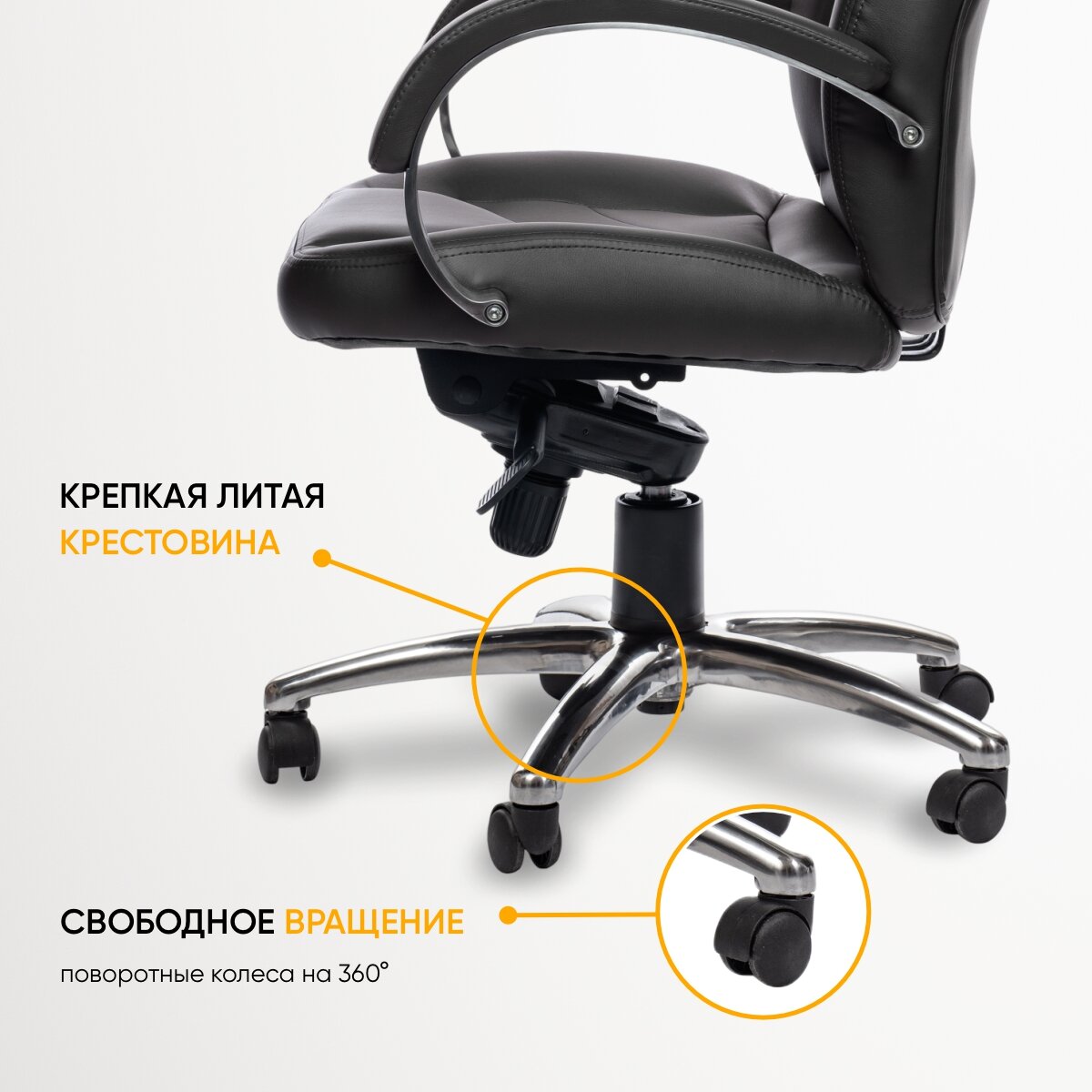 Компьютерное офисное кресло руководителя РосКресла Aura (черный/экокожа) на колесиках