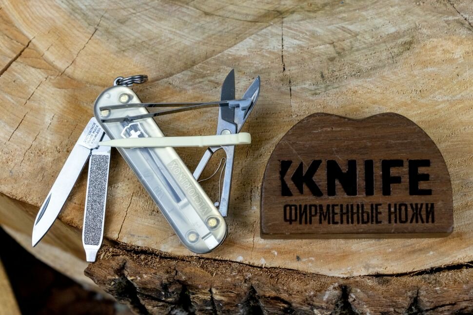 Нож-брелок VICTORINOX Classic SD Colors "Mystical Morning", 58 мм, 7 функций, полупрозрачный серый