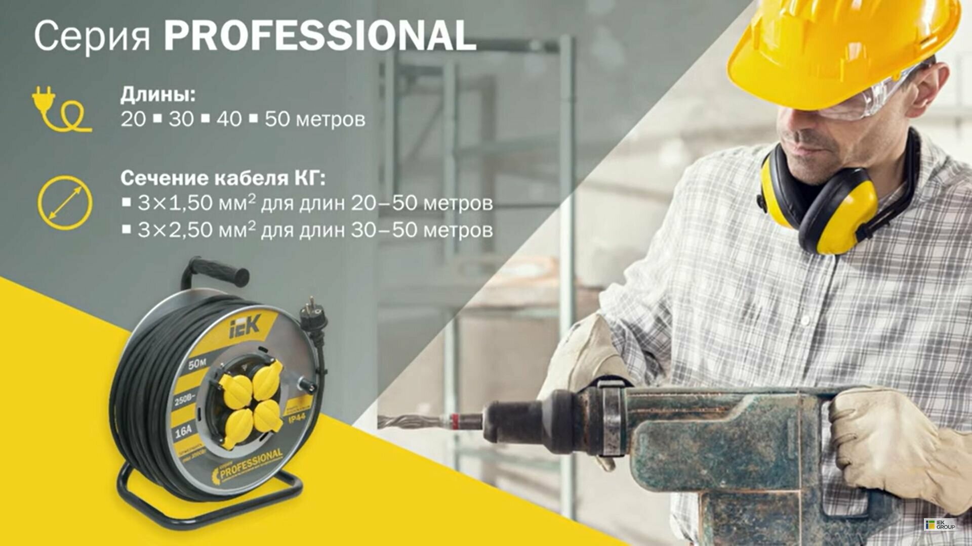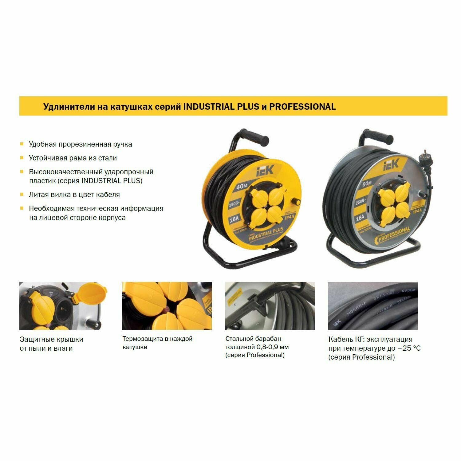 Удлинитель силовой на катушке 50 м, 4 розетки, уличный,КГ 3х2.5, IEK Professional, IP44, с термозащитой интересное: