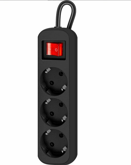 Сетевой удлинитель с выключателем Defender G330, 3 розетки, 3 м, с/з, 10А, 2200 Вт, черный