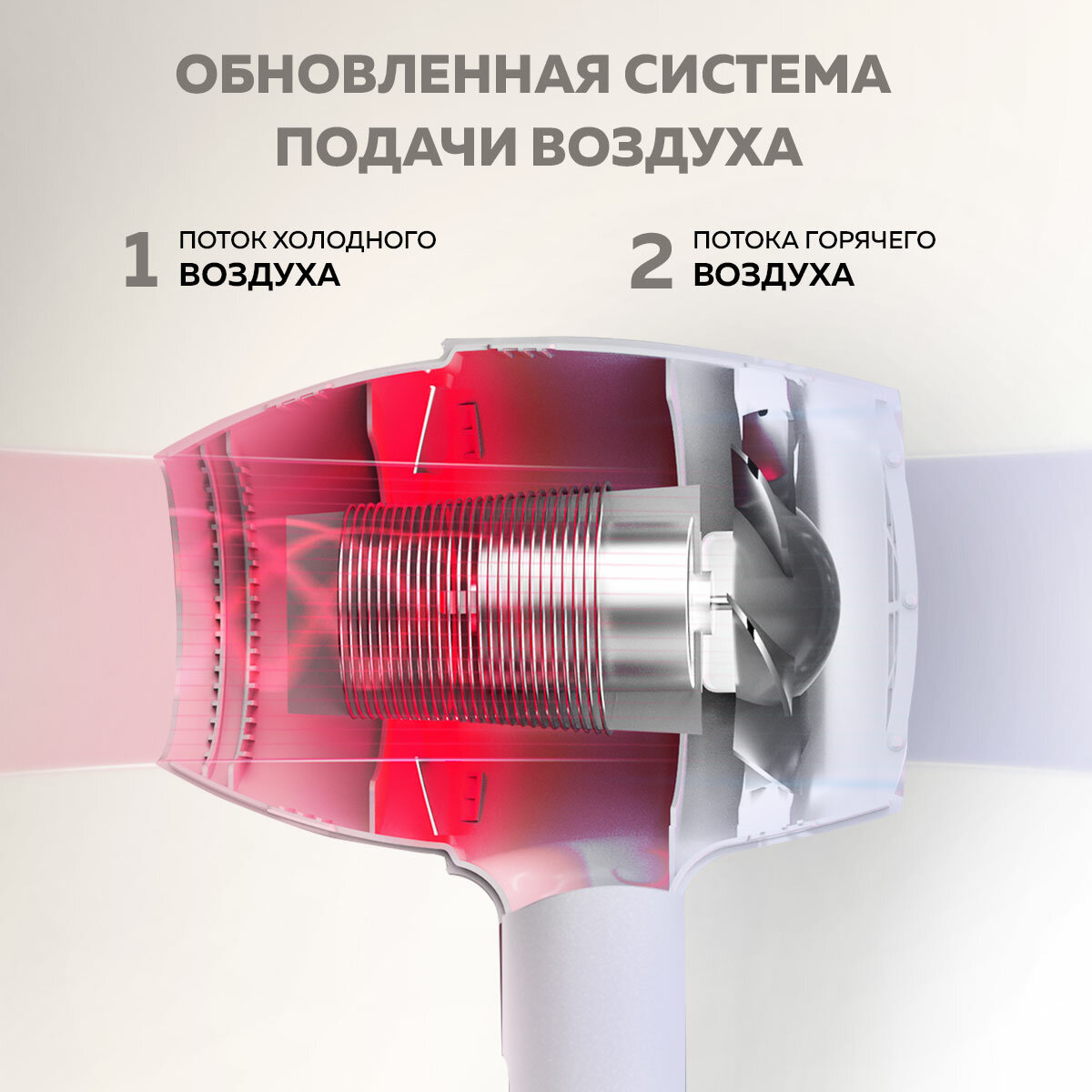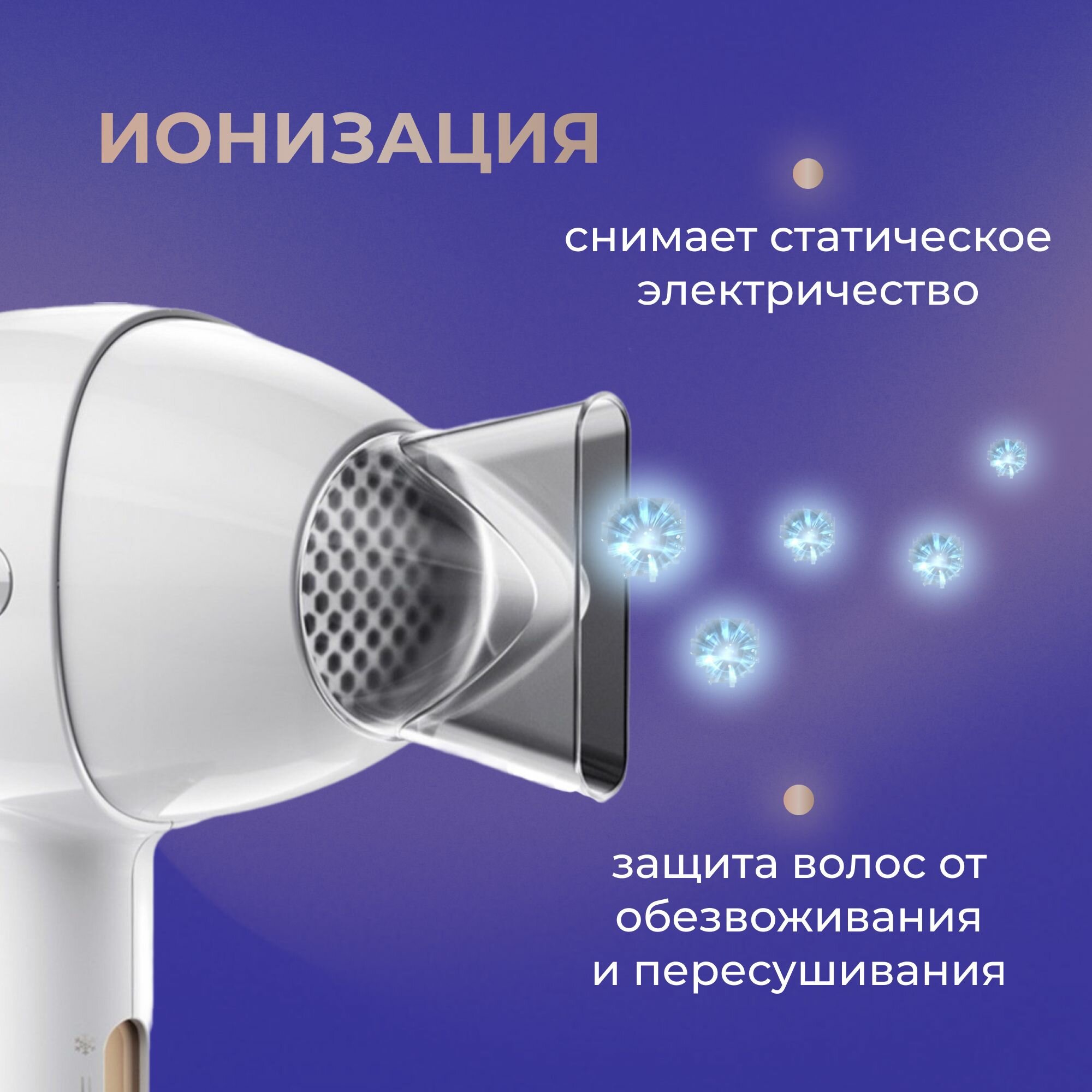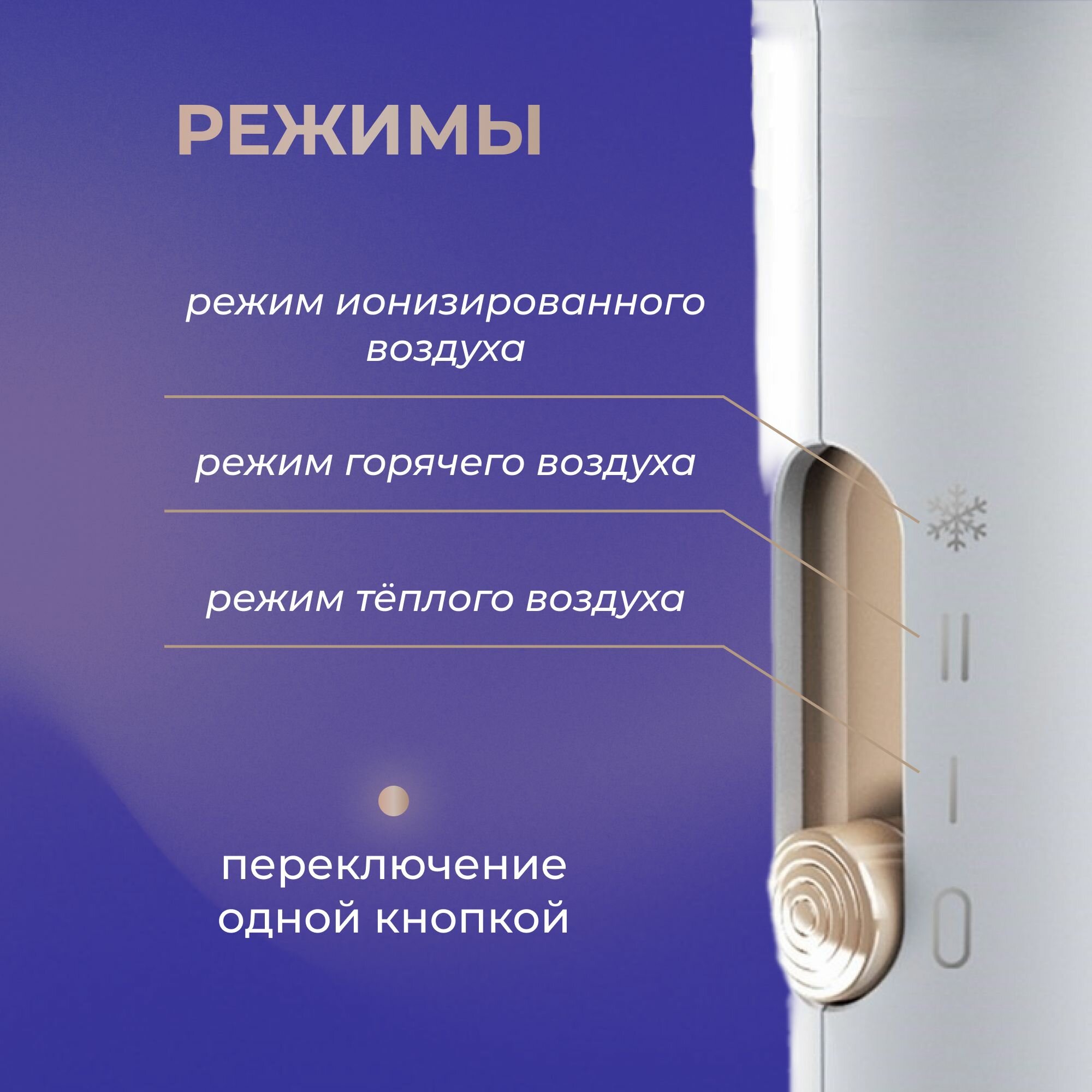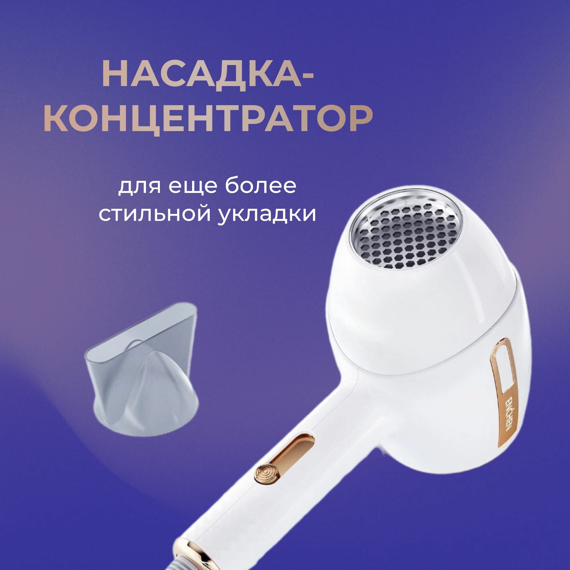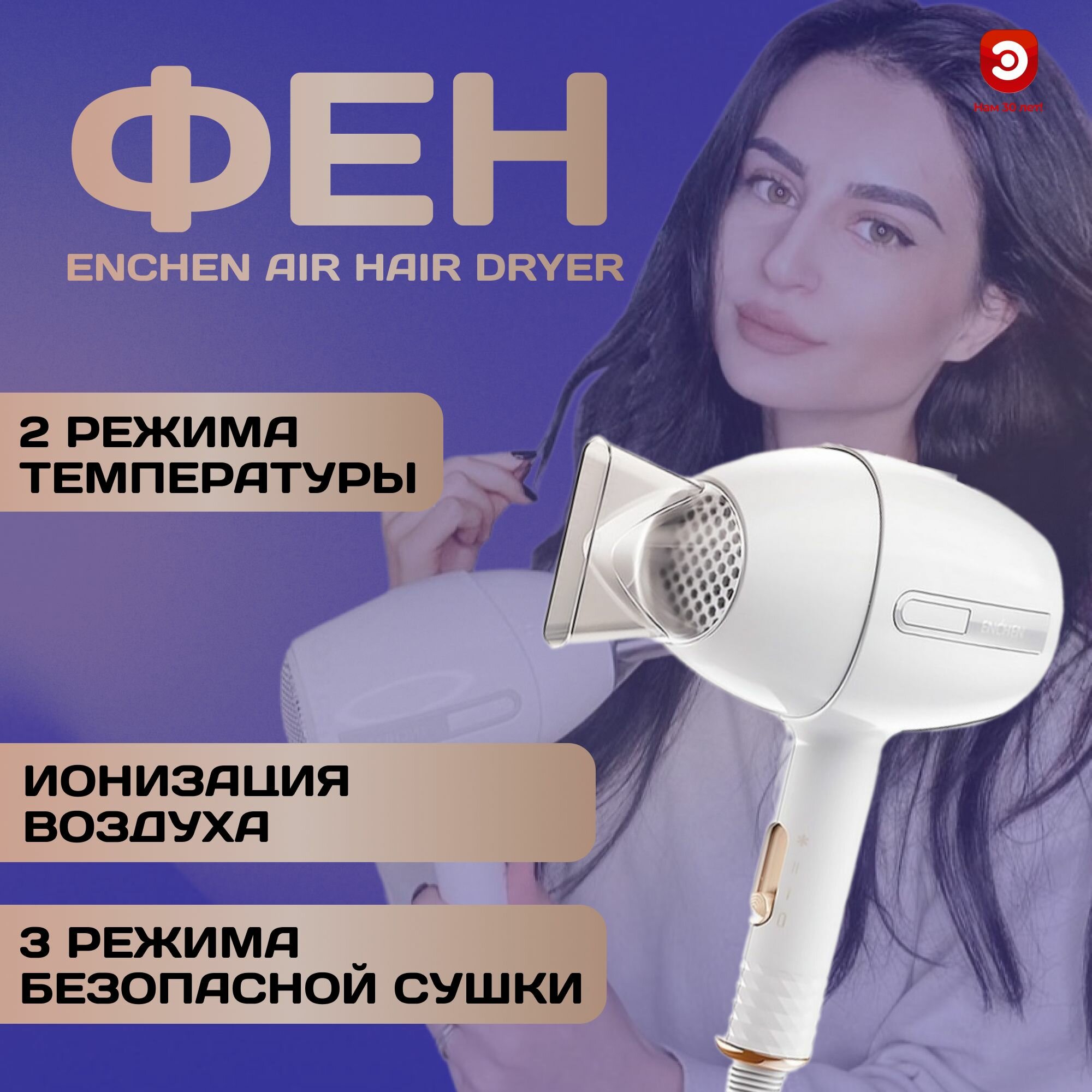 Фен профессиональный для волос Enchen Air Hair Dryer / Дорожный фен с насадкой для сушки и укладки волос, с ионизацией, 3 температурных режима, белый