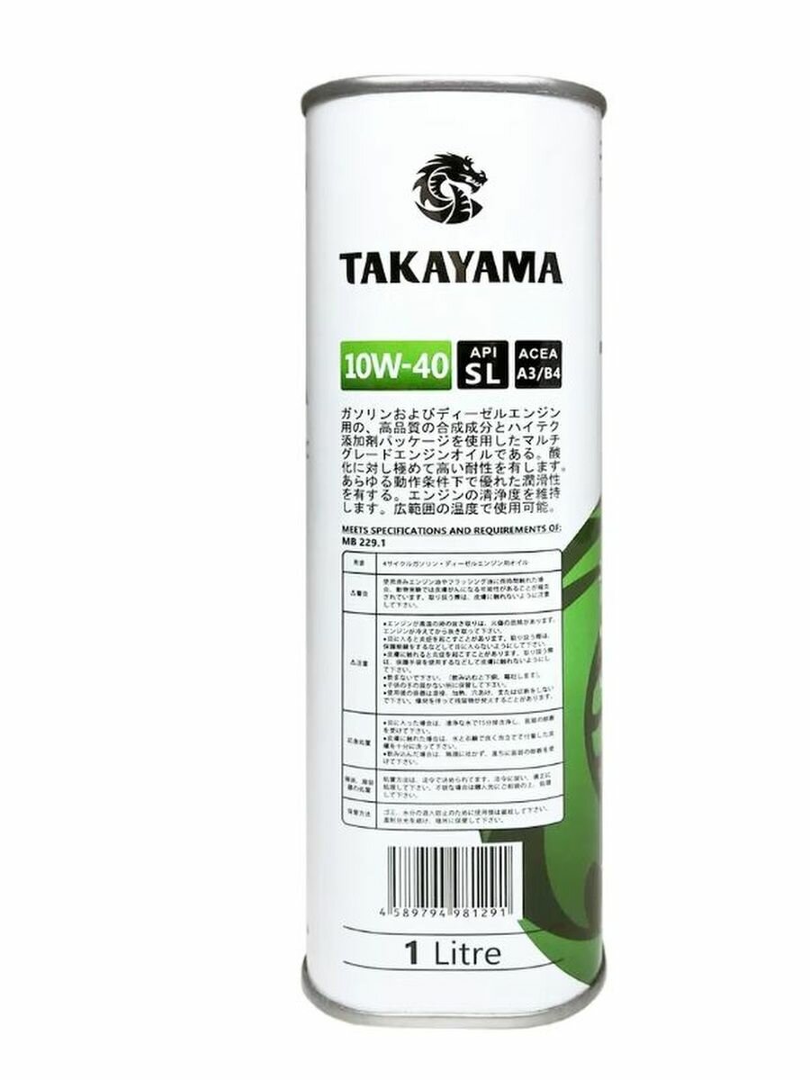 TAKAYAMA SAE 10W-40, API SL, ACEA A3/B4 1Л TAKAYAMA 605046