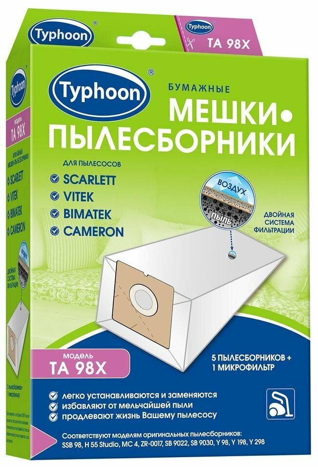 Мешок-пылесборник Тайфун TA 98X бумажный для пылесосов 5шт + 1 микрофильтр интересное: