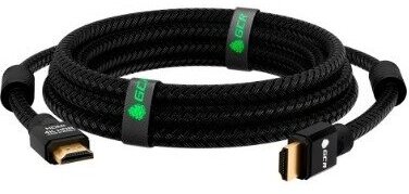 Видео-кабель 2м HDMI GCR Ultra HD 4K 3D 18 Гбит/с частично нейлон для игровых консолей черно-зеленый 24К GOLD