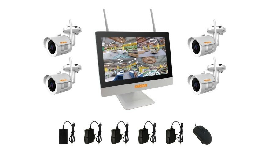 Купить Беспроводной комплект видеонаблюдения CARCAM 4CH WiFi NVR Kit 1080/4 LCD