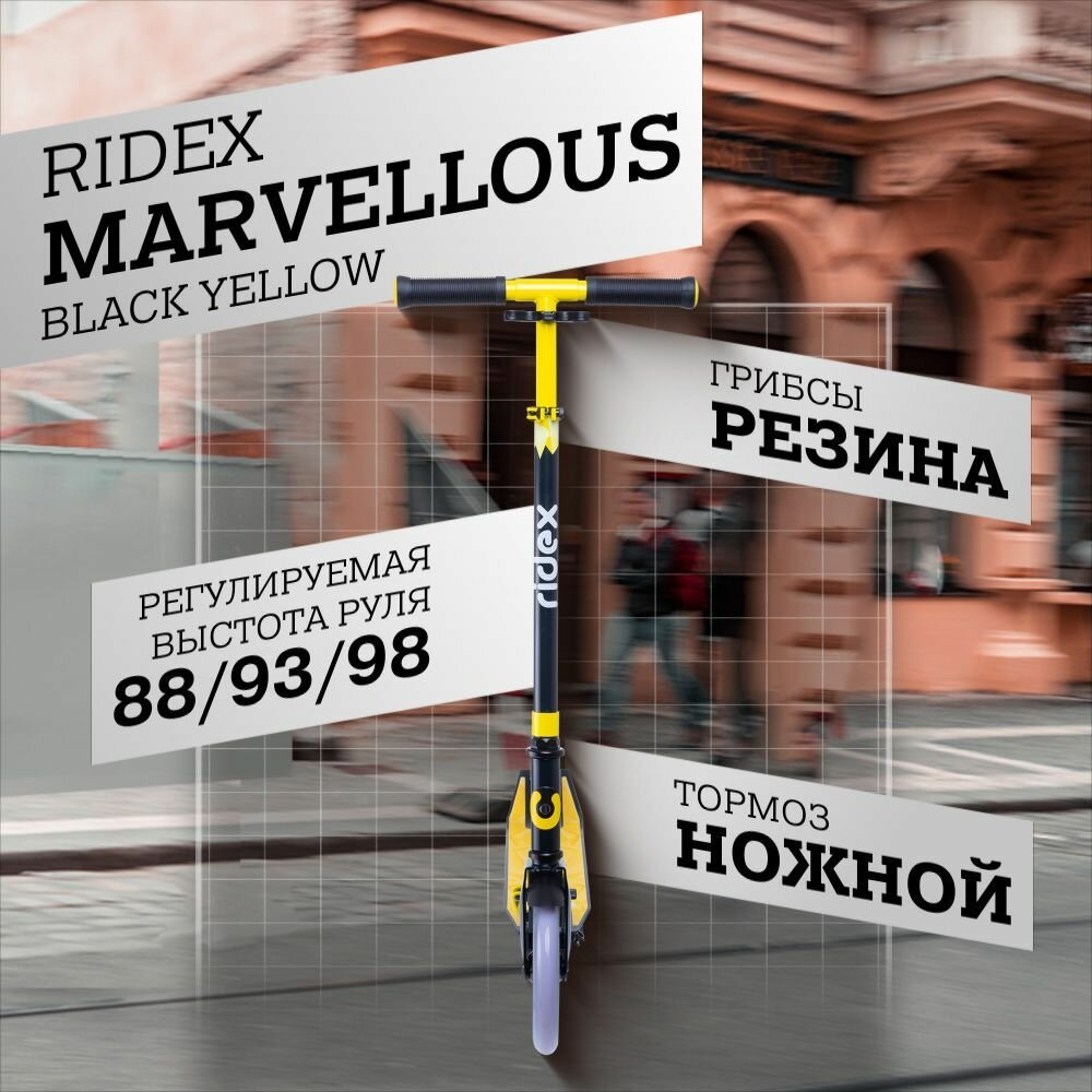 Самокат Ridex 2-колесный Marvellous 200 мм, черный/желтый