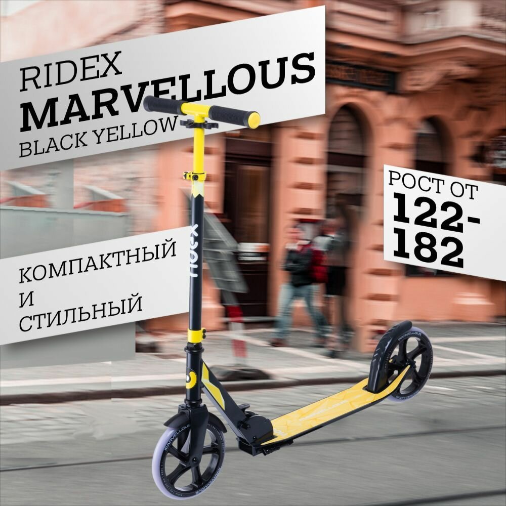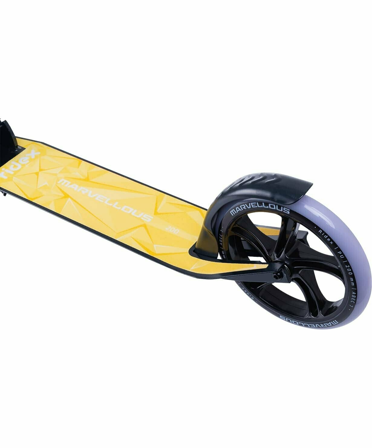 Купить Самокат городской для взрослых и подростков, 2-колесный Marvellous 200 мм. Цвет: черный/желтый. Ridex. УТ-00018357