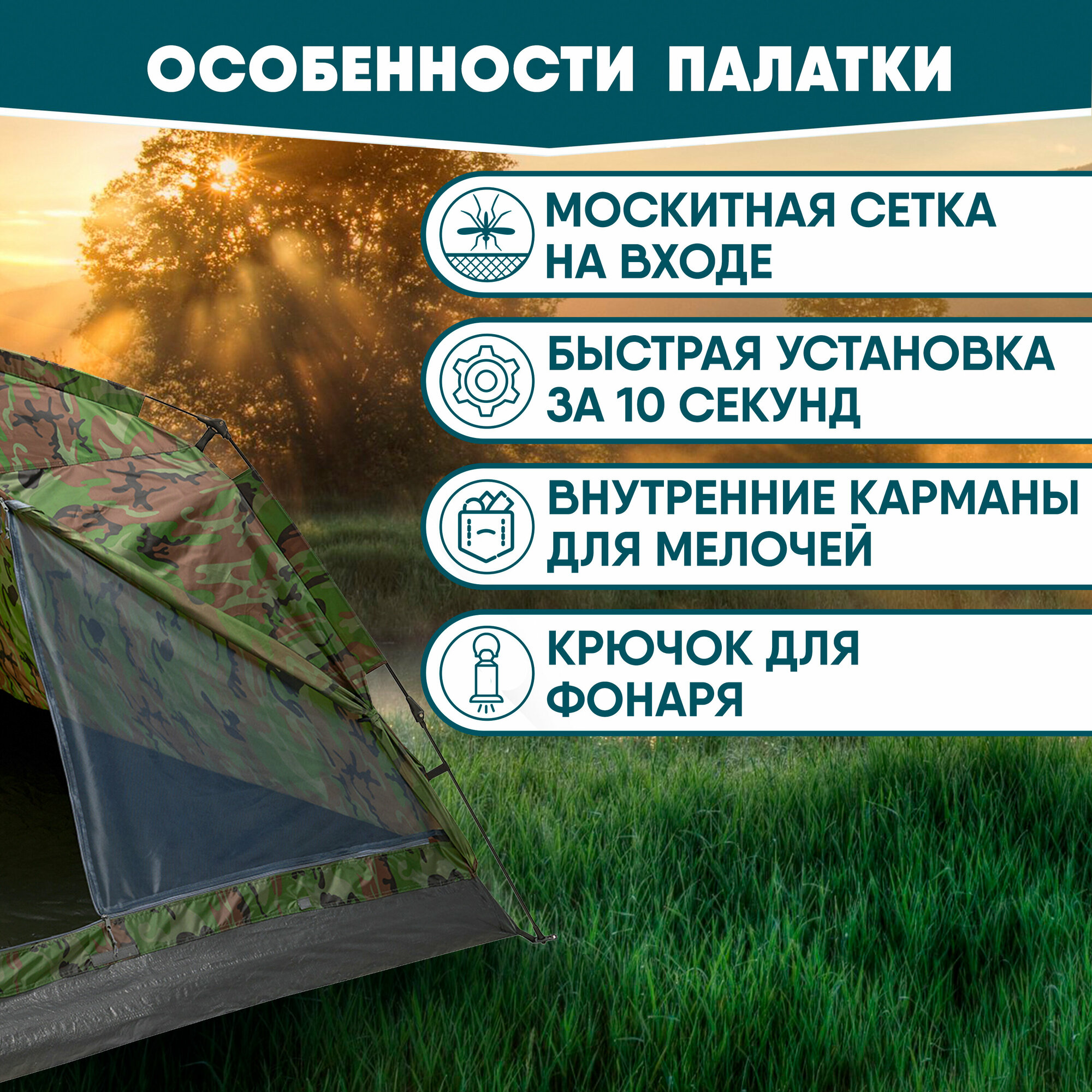 Двухместная палатка Jungle Camp Easy Tent Camo 2, цвет зеленый/серый 70863 интересное: