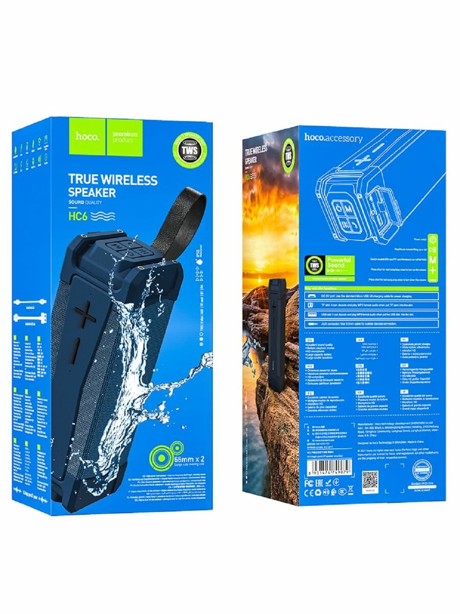 Беспроводная стерео колонка HOCO HC6 4000mAh, TWS, BT 5.0, U-disk, TF, FM, Waterproof IPX5, Темно-Синий