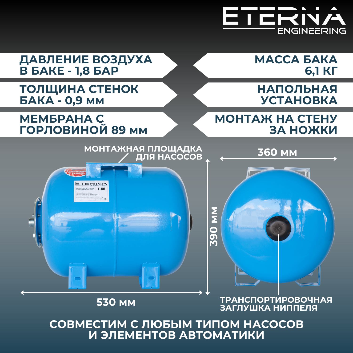 ETERNA Гидроаккумулятор ETERNA Г-50П, для систем водоснабжения, горизонтальный, 50 л
