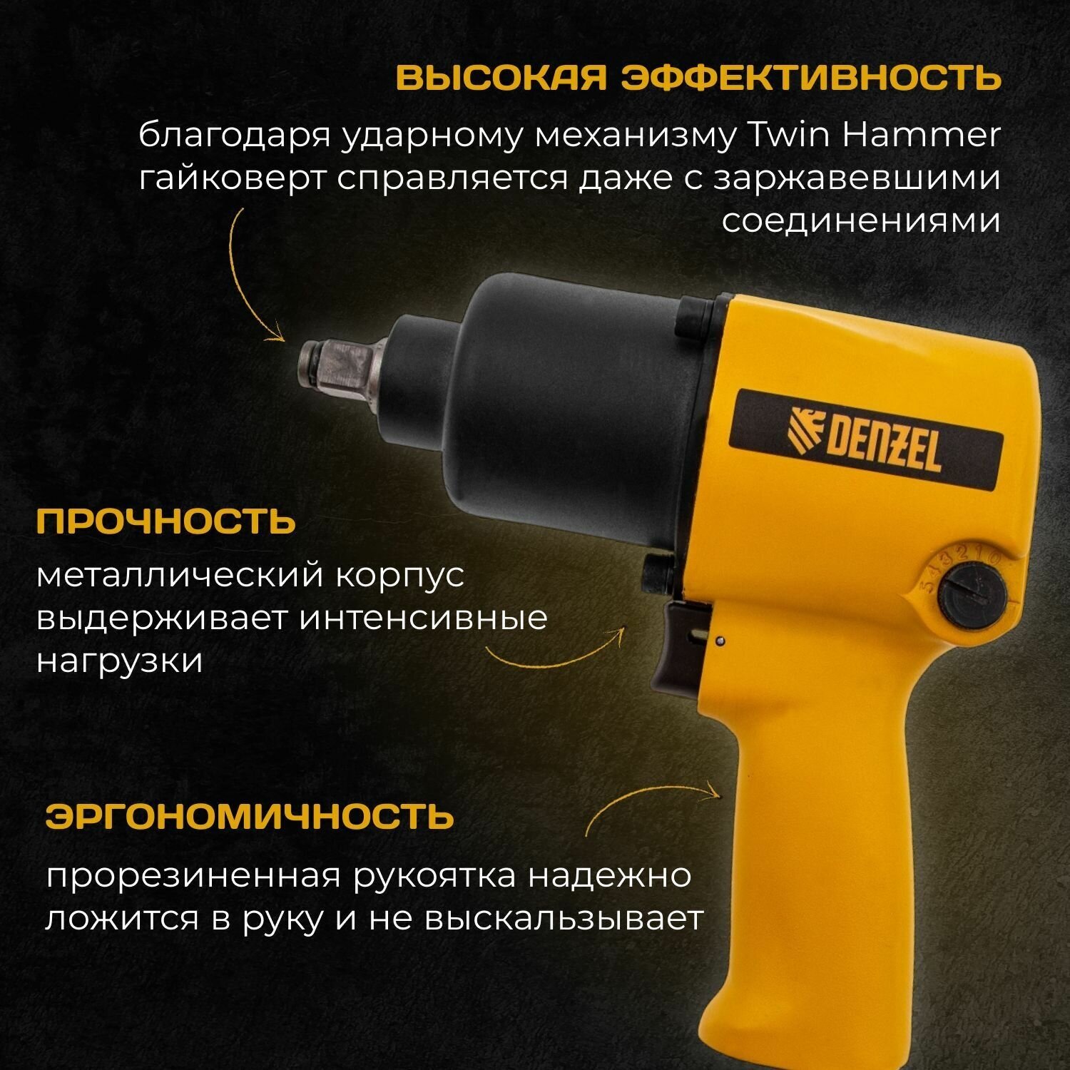 Ударный пневмогайковерт IW680, 1/2", 7000 об/мин, 680 Нм// Denzel 57471 .