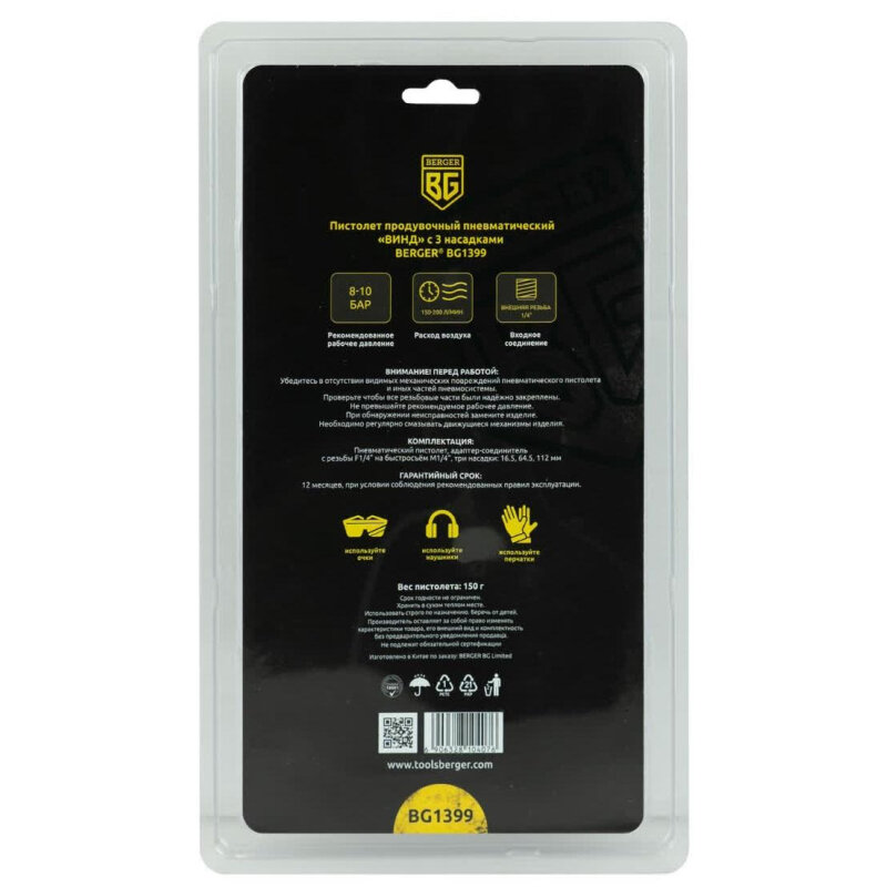 Продувочный пневматический пистолет Berger BG винд с 3 насадками BG1399 интересное: