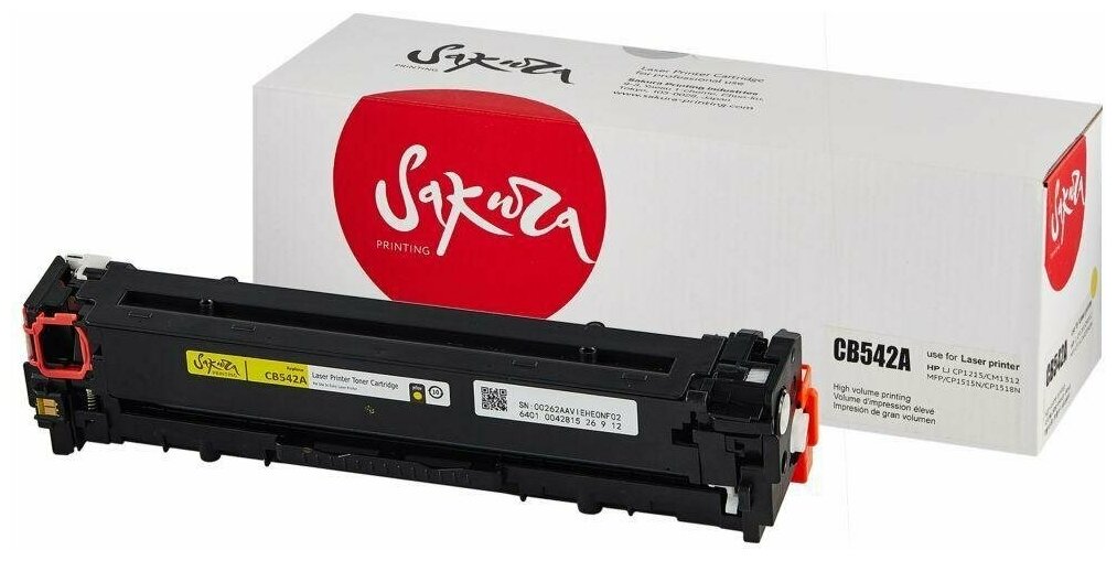 Картридж SAKURA PRINTING SAKURA CB542A для HP Color LJ CM1312MFP/CP1215/CP1515/CP1518, желтый, 1500стр.