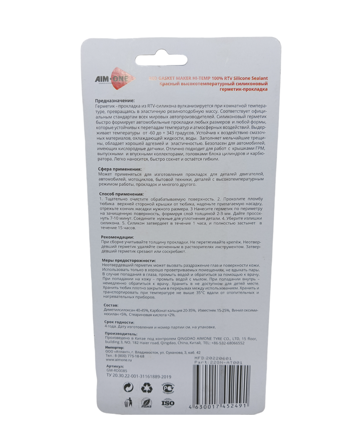 Герметик Для Прокладок 85гр. Красный Aim-One. Red Rtv Gasket Maker Neutral Type AIM-ONE арт. GMRD0085
