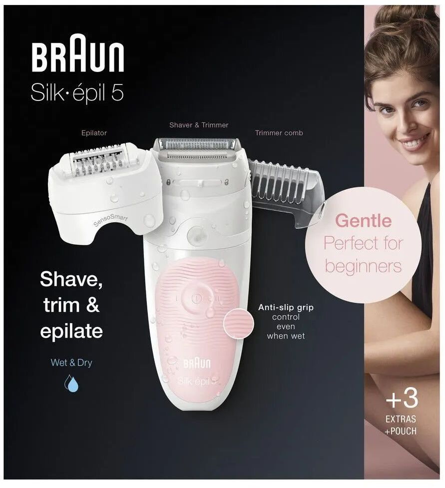 Эпилятор Braun 5-516 Silk-epil 5 Wet & Dry, розовый/белый интересное: