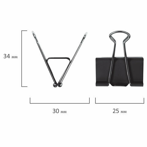 Зажимы для бумаг, комплект 12 шт., 25 мм, на 100 листов, черные, картонная коробка, 221999