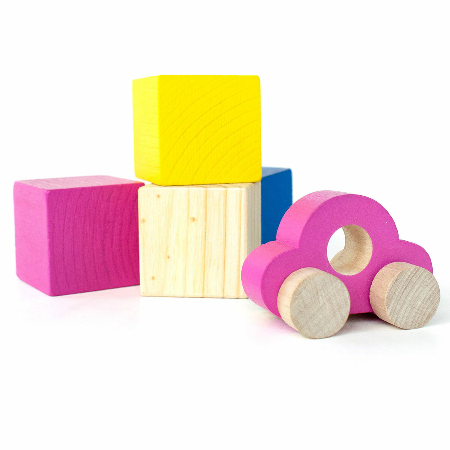 Купить Деревянная фигурка-каталка Томик "Машинка" малиновая, развивающая игрушка для малышей