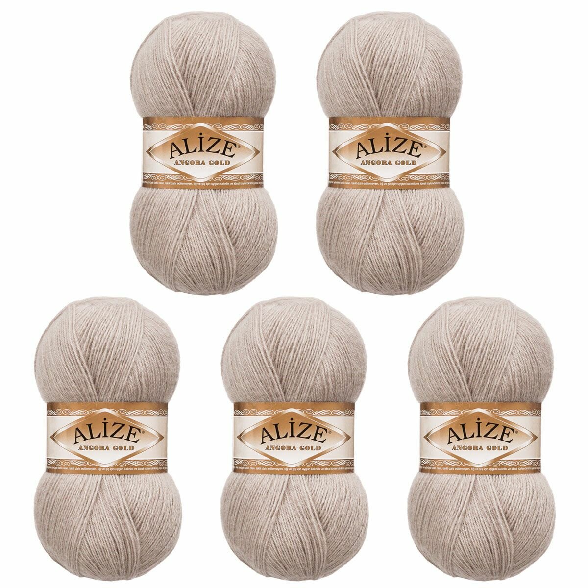 Пряжа для вязания крючком, спицами Alize Ализе Angora Gold, тонкая, акрил/шерсть, цвет 652, ангора, 5 шт. по 100 г, 550 м