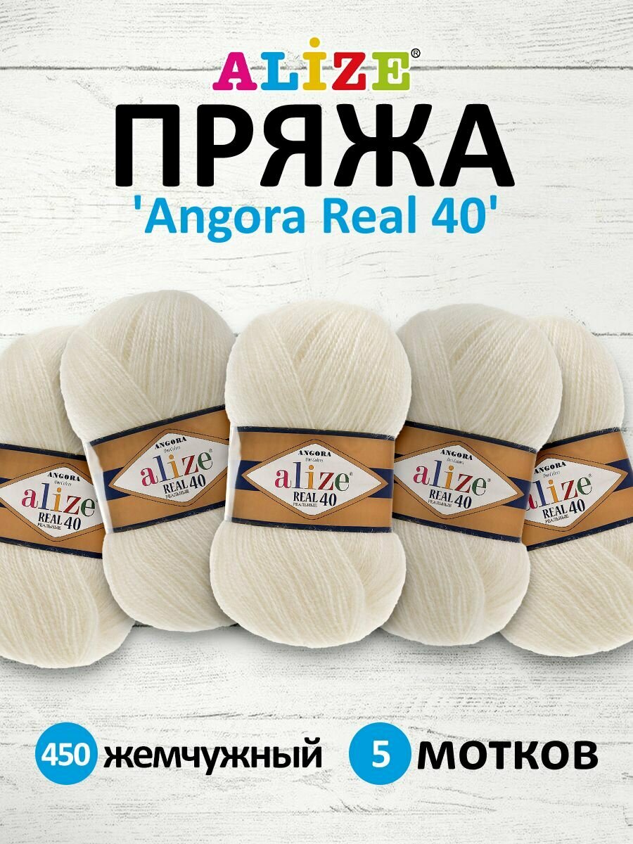 Пряжа ALIZE ANGORA REAL 40, жемчужный - 450, 40% шерсть, 60% акрил, 5 мотков, 100 г, 430 м.
