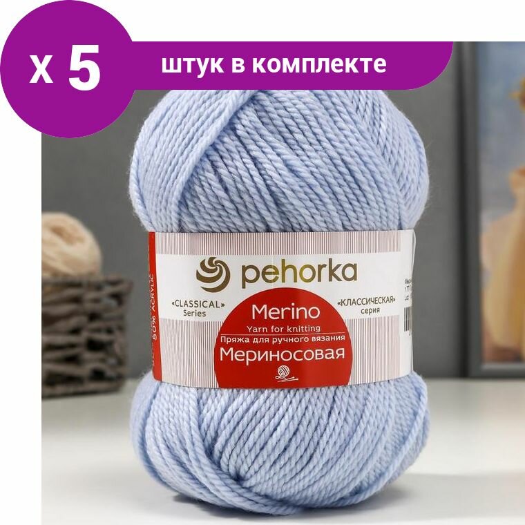 Пряжа полушерсть Пехорка Pehorka Мериносовая средняя, шерсть мериносовая, акрил, цвет 177 голубое небо, 10 шт. по 100 г, 200 м
