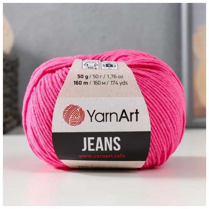 Купить Пряжа YarnArt Jeans, 55 % хлопок, 45 % акрил, 50 г, 160 м, 1 шт., 42 ярко-розовый