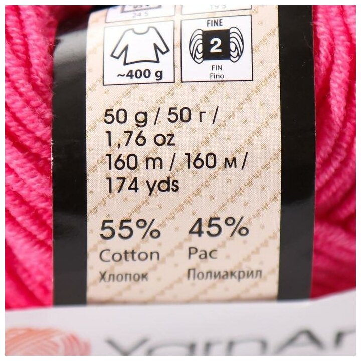 Пряжа YarnArt Jeans (ЯрнАрт Джинс) - 1 моток Цвет: 20 ярко-розовый 55% хлопок, 45% полиакрил 160м/50г