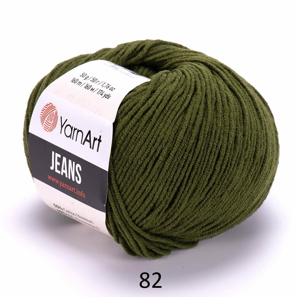 Пряжа Yarnart Jeans 82 хаки, 55%хлопок/45%акрил, 160м, 50г, 1шт