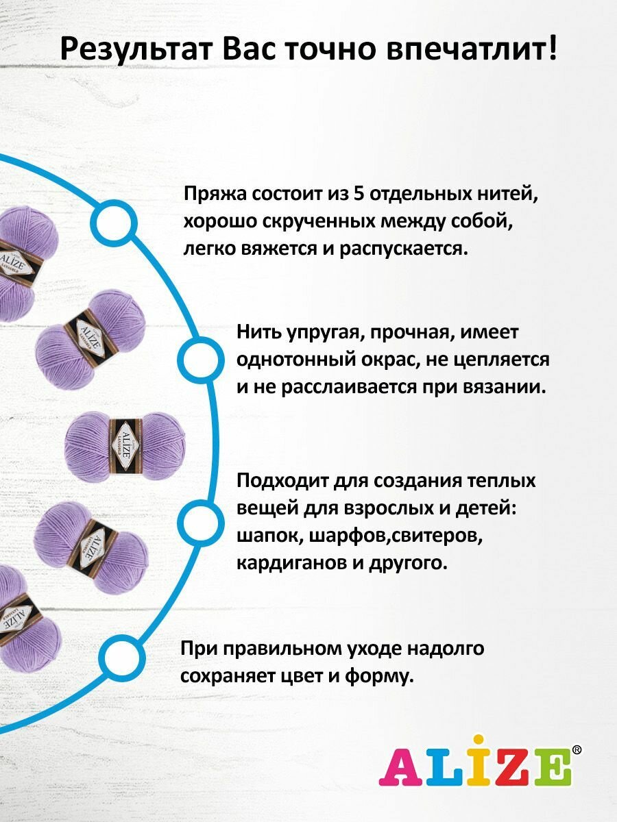 СохранитьПряжа ALIZE LanaGold цвет 166 лиловый ЛанаГолд 1 упаковка 5 мотков по 100г по 240м интересное:
