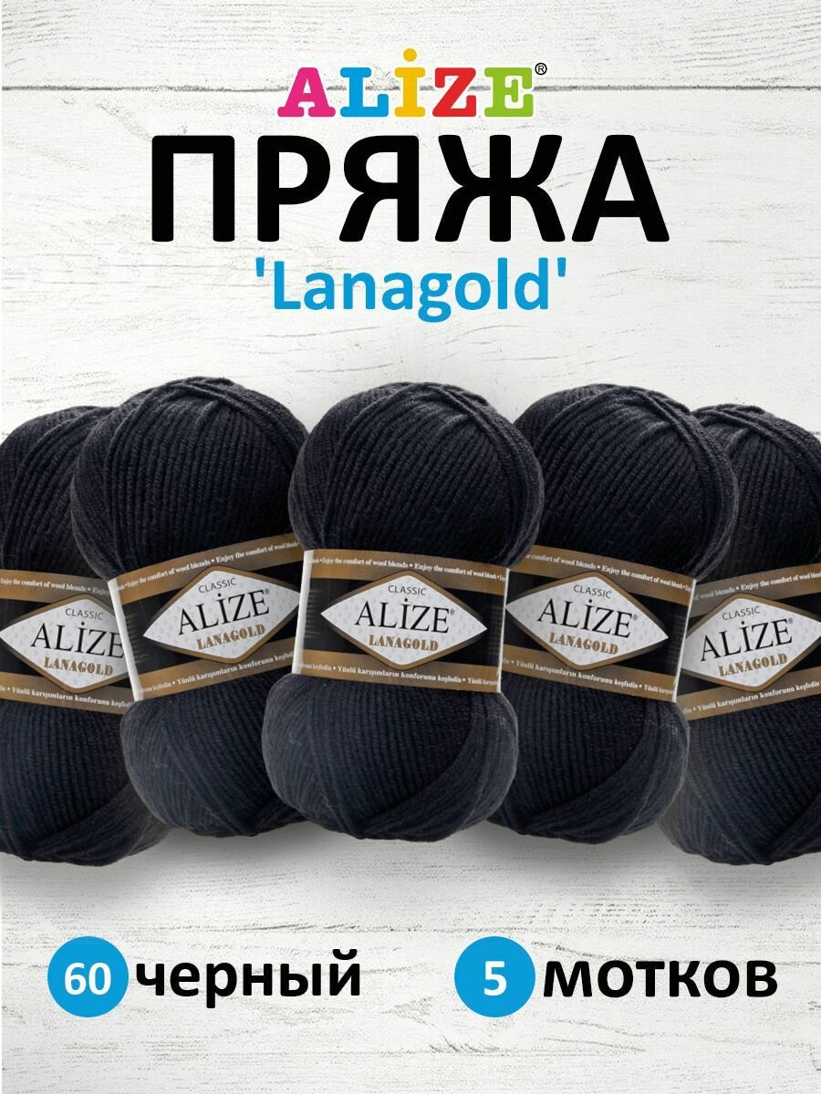 Купить Пряжа Alize Lanagold (Ализе Ланаголд) - 5 мотков 60 черный 49% шерсть, 51% акрил 240м/100г