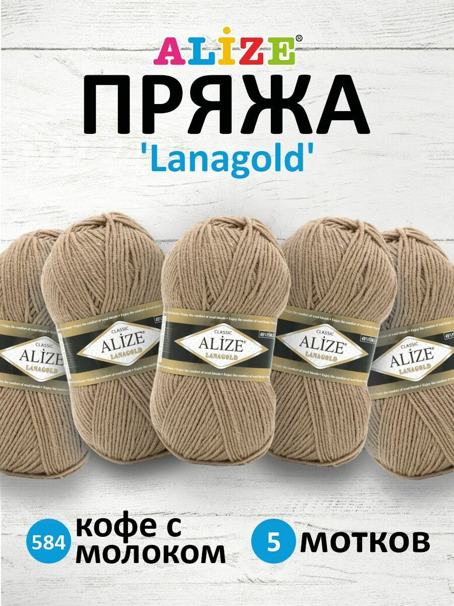 Купить Пряжа ALIZE LANAGOLD, кофе с молоком - 584, 49% шерсть, 51% акрил, 5 мотков, 100 г., 240 м.