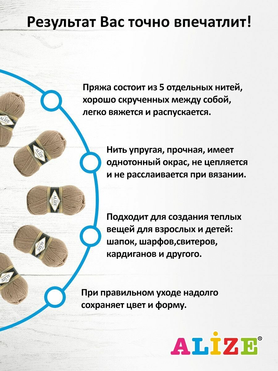 СохранитьПряжа ALIZE LANAGOLD, кофе с молоком - 584, 49% шерсть, 51% акрил, 5 мотков, 100 г., 240 м. интересное: