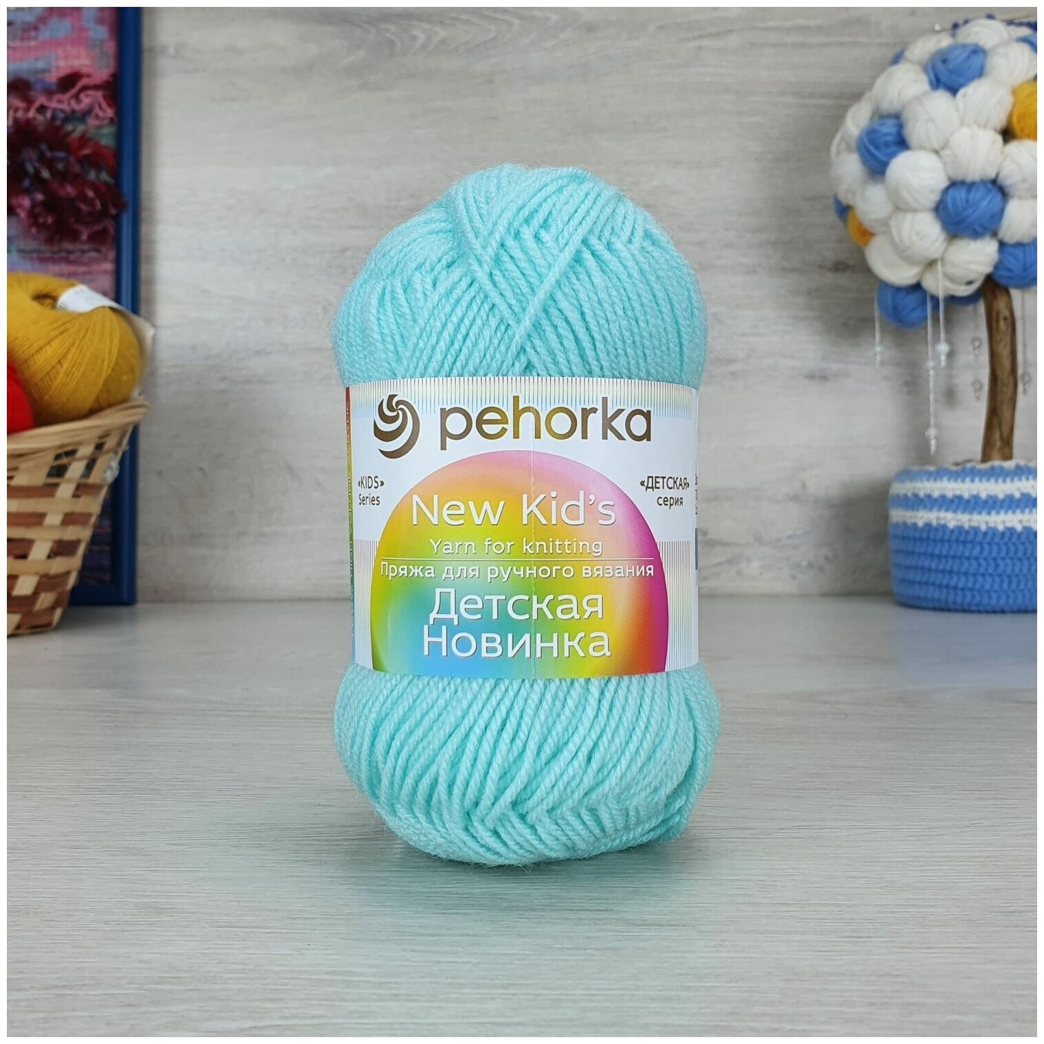 Пряжа для вязания Пехорка "Детская новинка", цвет 583 бирюза, 50г, 200м, 10шт/упак