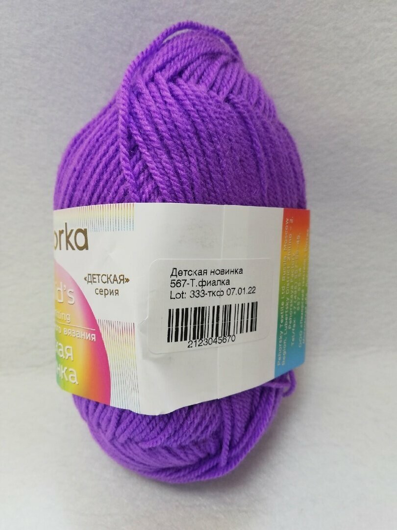 Пряжа для вязания Пехорка 'Детская новинка' 50г, 200м (100% акрил) (567 темная фиалка), 10 мотков