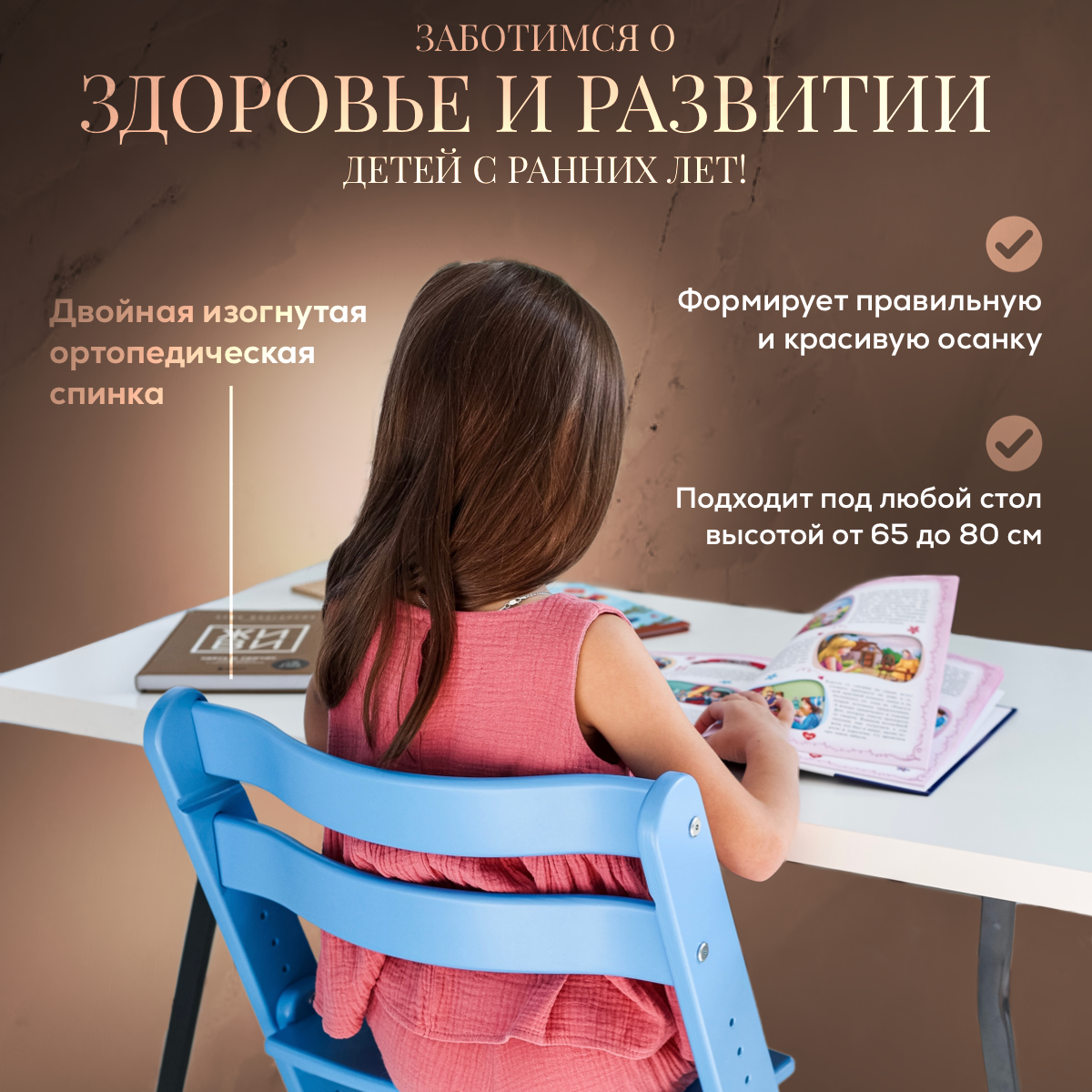 СохранитьРастущий стул для детей, детский деревянный стульчик для школьника Конек Горбунек Комфорт, цвет Синий интересное: