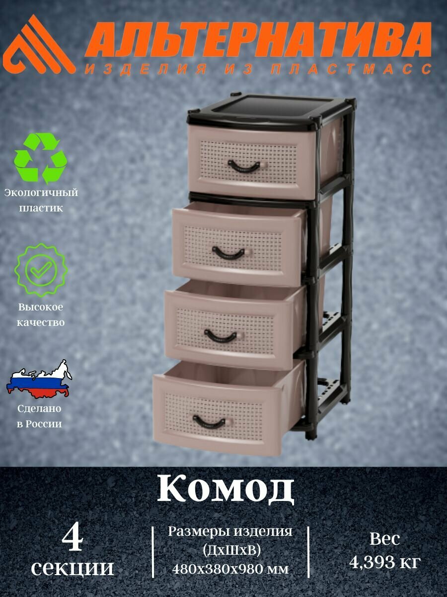 Альтернатива Комод 4-х секционный, цвет бежево-коричневый