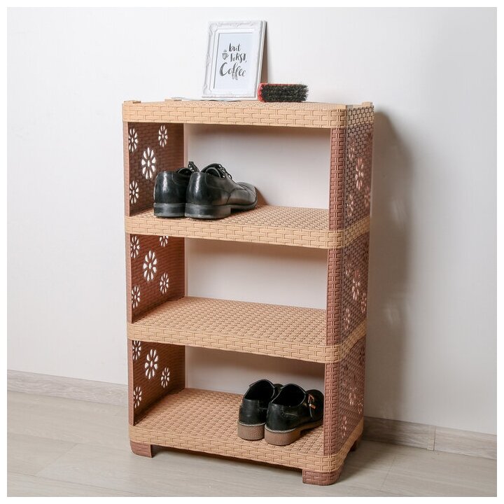 Этажерка напольная 4-х секционная «Плетёнка», цвет какао