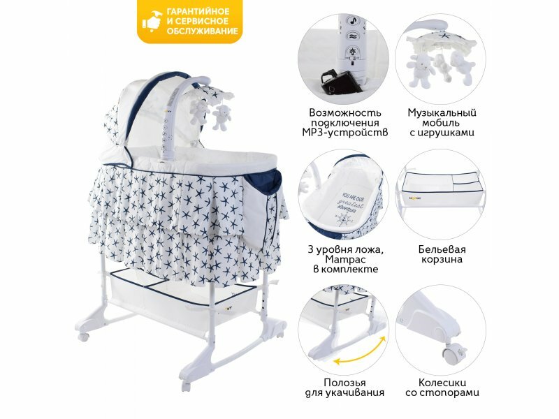 | Отзыв: | колыбельная с подсветкой, есть кармашек для личных вещей или игрушек, приятный материал, высота регулируется. |