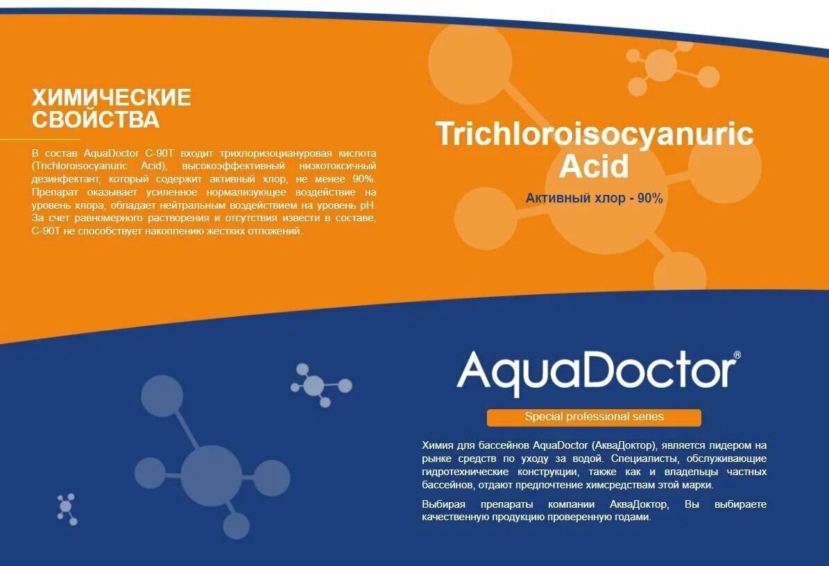 СохранитьAquaDoctor С-90Т (1 кг) Хлорные таблетки длительного действия для бассейна по 200г. АкваДоктор интересное: