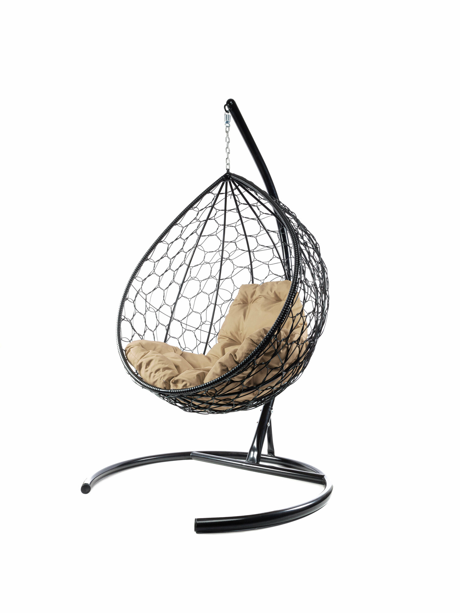Подвесное кресло капля ротанг черное(без стойки), бежевая подушка