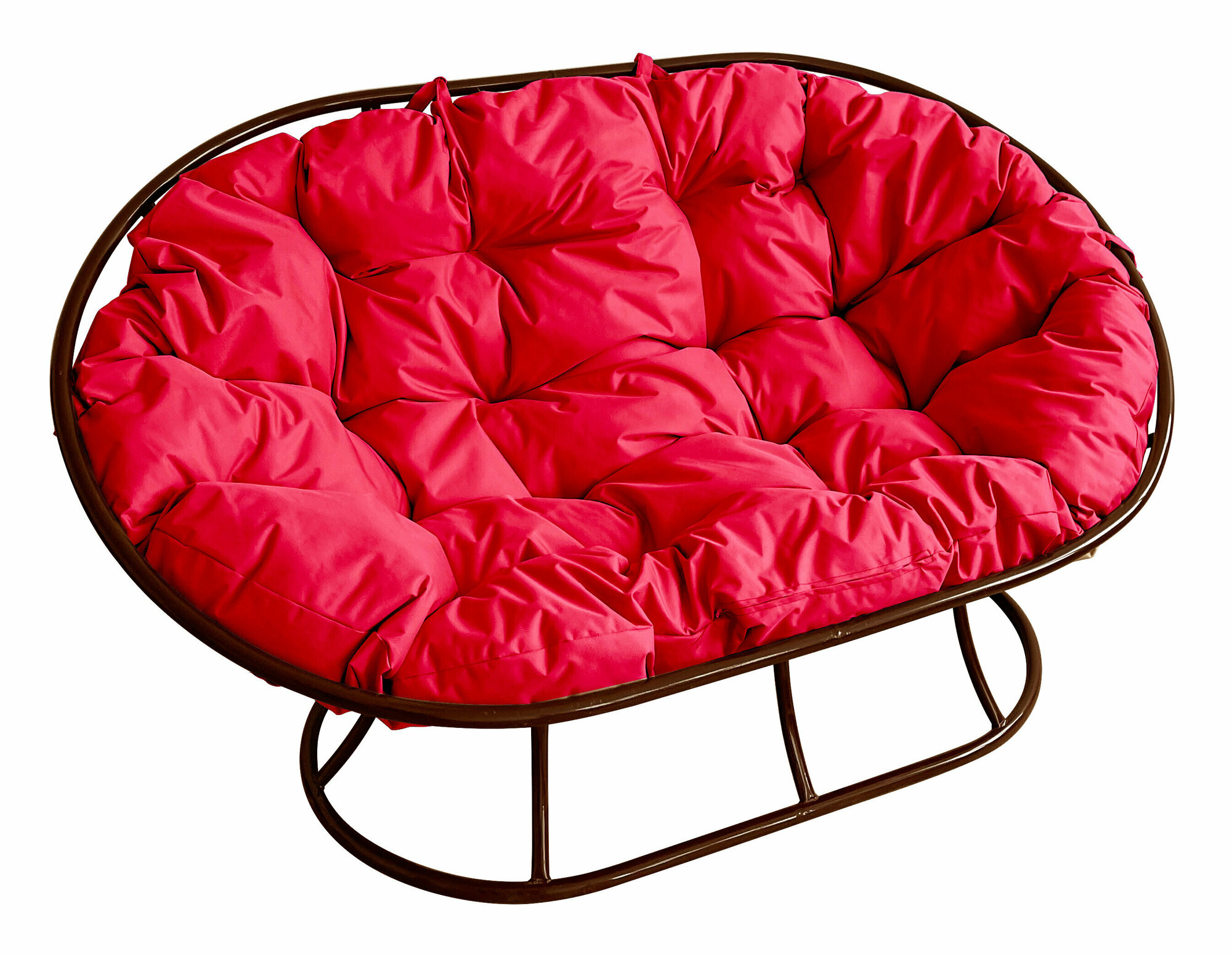 Подвесное кресло M-group капля с ротангом коричневое красная подушка