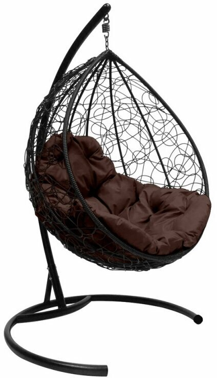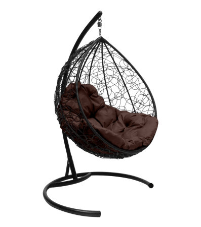 Купить Подвесное кресло капля с ротангом чёрное, коричневая подушка