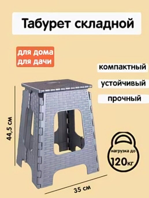 табурет складная пластиковая бежевый/коричневый 1 шт.